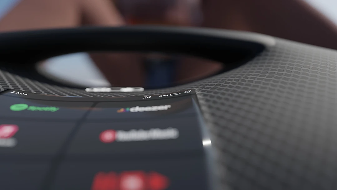 L'objectif de l'écran est de permettre à l'utilisateur de gérer son contenu directement depuis l'enceinte, sans avoir d'appareil tiers à connecter.